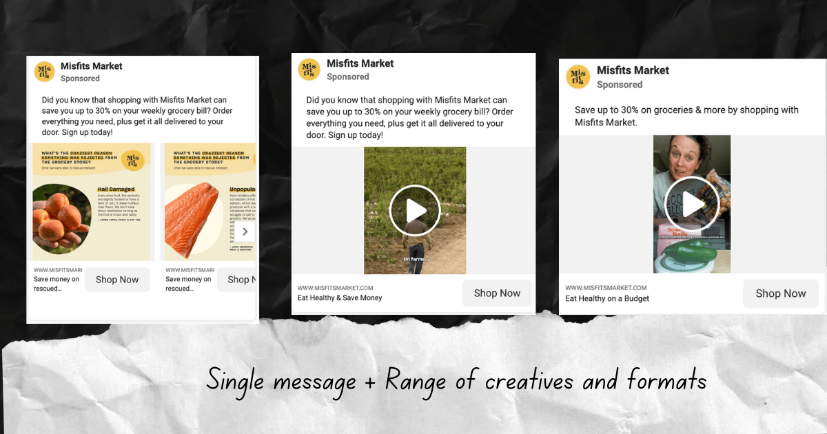 Misfits Market knew Meta was still the channel to lead with and scale. They had to bring the acquisition costs (CAC) down to scale while combating razor-thin margins.